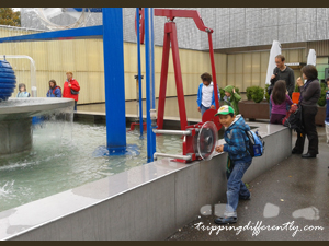 Here Tobias is having fun with the hands-on water fountain outside the centre as we waited for our friends to arrive: