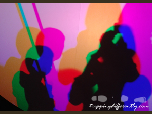 We stood in front of some different coloured lights being projected from the ground and saw the effects on the wall opposite. i think they were not ordinary lights – not sure what they are – definitely need to go back and find out more.