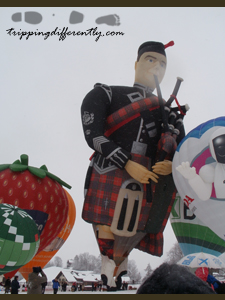 However, all that snowfall (it kept on falling in big fat flakes while we were there) means that it is bad weather and poor visibility for ballooning, the balloons were not going to take off. But they did inflate them so that the people who did come to see them will have something to see.