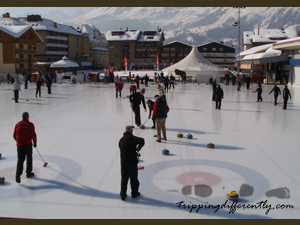 We took it nice and slow that first full day we were there. We just walked around the village, checking it out. There were other activities happening besides skiing. They have a fairly large area for skating and curling, a sport which i find rather amusing to watch; all those people with brooms to sweep the ice trying to slow down a large rock as they try to knock their opponent out – a little like playing with marbles, just bigger and with sliding involved 😉