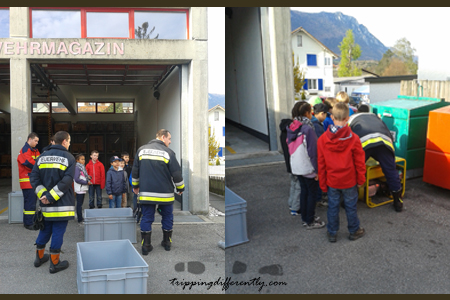 It was in the early evening and lasted 2.5 hours, 6pm to 8.30pm. They were divided into 3 groups and were led by Youth Firefighters while the Senior Firefighters (or Fulltime Firefighters) got ready the 3 different stations they were to visit. It is just our local village firehouse so it is not very big and didn’t have one of those poles to slide down – sigh! But they did a few nice setups for the kids to try.