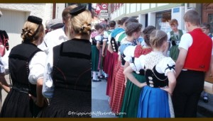i absolutely loved seeing all the traditional costumes almost every other person was wearing. (You can also see the costumes in the videos.) There was a large variety of traditional dresses worn by the women, depending on which region they came from. The men mostly wore the white shirt under a short-sleeved black jacket, often lined with white and red strips. They usually pin the badges of all the yodeling festivals they have been to on their jacket collars.
