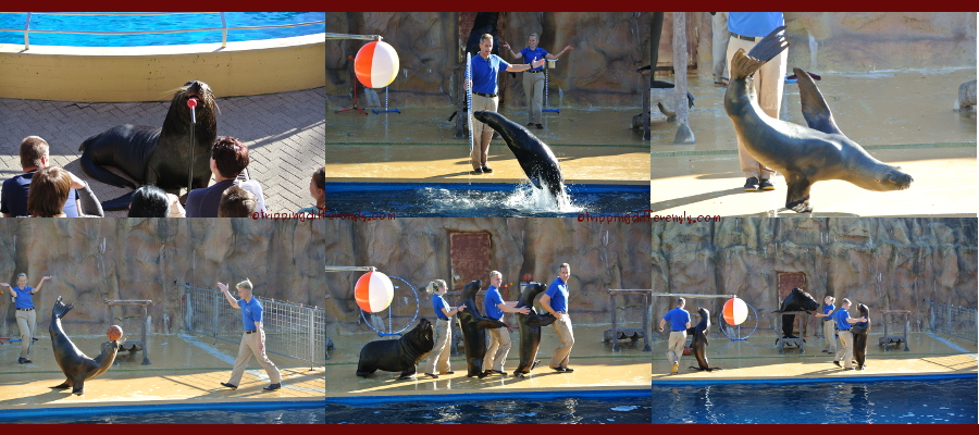 Anyhow, the dolphin show was fantastic! We LOVED it! It was fun and really showed off what the dolphins can do. They stressed at the beginning and at the end of the show how important clean seas/oceans are for the survival of the dolphins. They also stressed that all the tricks the dolphins do are what they already do naturally, they just trained the dolphins to do them on cue.