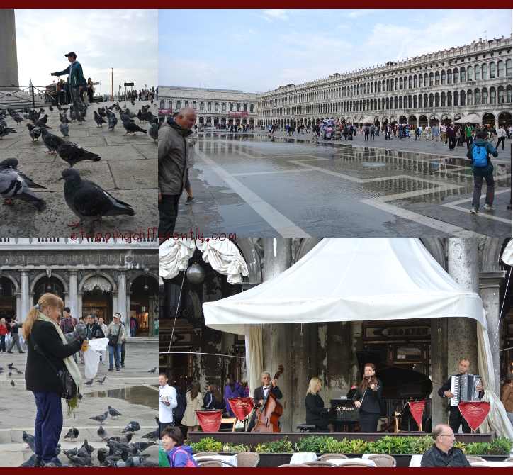 This is the very famous San Marco Square – there are loads of pigeons everywhere and even a geniue “bird-lady” – she reminds me of the one in Mary Poppins who sang the song “Feed the Birds”. It was also nice to sit at one of the cafes (yes it was a bit pricey) and enjoy the live music. We concluded that the different bands must coordinated with each other so they don’t play at the same time cos the music does carry across the square.