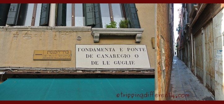 The other interesting thing to do in Venice is to wander through all the narrow alleyways and find little glimpses of everyday life. We wandered upon a Montessori pre-school one time. And another time, we saw a whole group of little children on their way to school – they gathered along a canal-way and seemed to waiting for what Tobias called their ‘School-boat’ to take them to school. See the left picture above, see the Hebrew words, that’s the start of the Jewish Quarter or better known as the Ghetto.