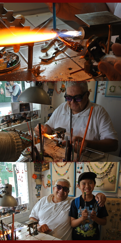 Tobias was so taken with their work, he stood and watched for a long time. He even bought a handmade glass unicorn with his pocket money. There is no need to pay to watch these men at work. You just need to walk the island and there will be a few open doors where you can just watch. Don’t follow anyone who says he will guide you to the best one. Those usually come with hard-sell sales pitches.