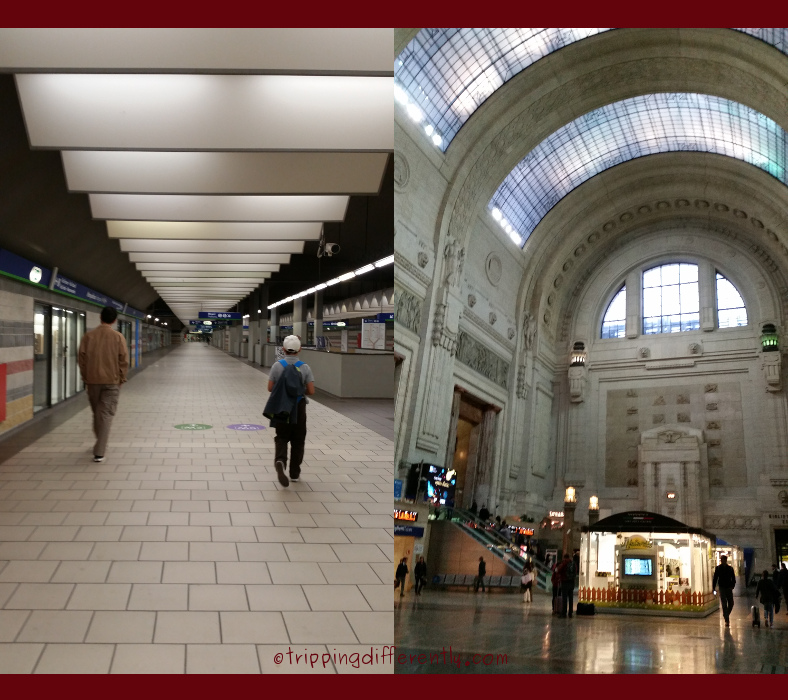 We had driven the 4 plus hours from our home to Milan and so didn’t feel like doing very much that evening. We had a very late lunch, shopped for some breakfast items and then headed to the Central station to have a walk around the central area of Milan. In the above photos, you see the inside of the nearest Metro station to us and the wonderful architecture of the Central station.