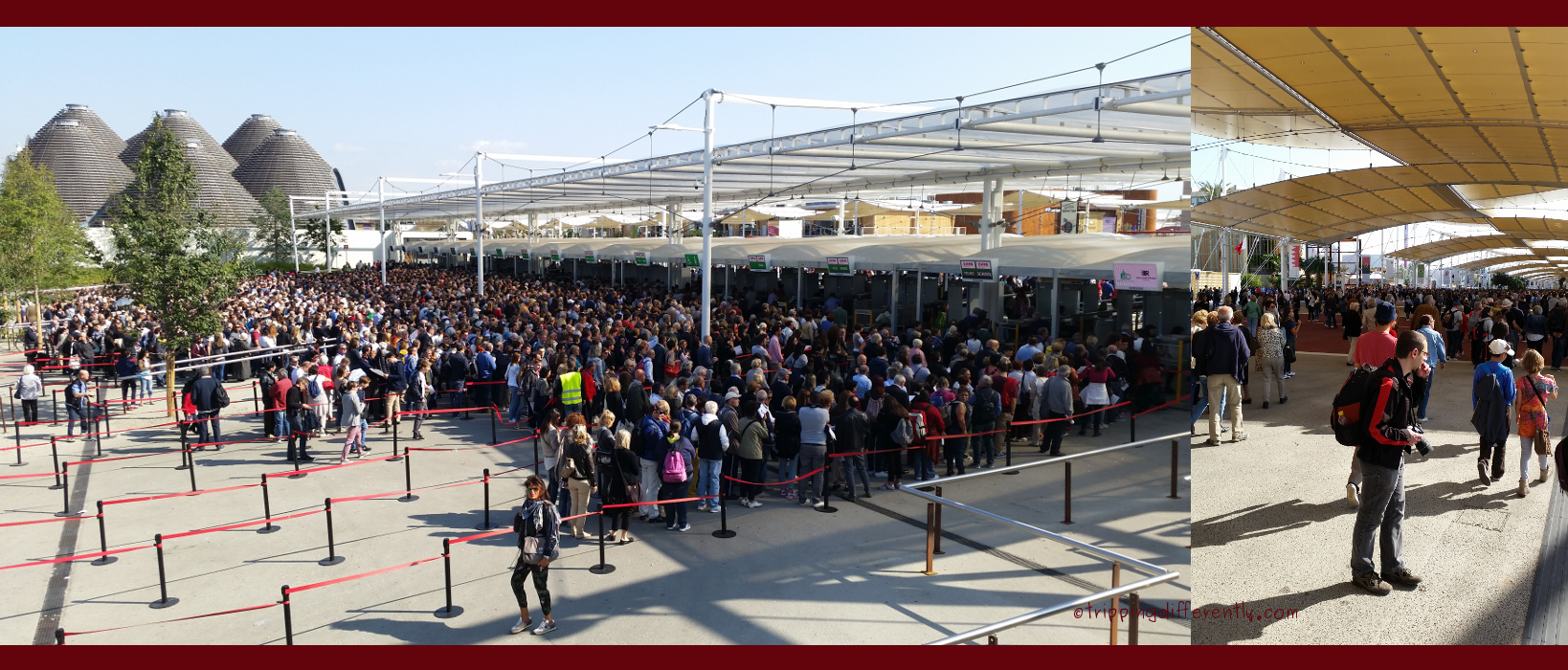 The next morning we were off to the Expo. We got there at 10ish and got our tickets. And because we managed to meet our friends at the train station, we were saved from joining that very long queue you see in the above-left photo and walked with them to another entrance where there was almost a very short queue. In the right photo, you see the main “street” of the Expo. According to the map provided, if you just walked from one end of the main street to the other, it would take you about 40 to 45 mins! That’s without stopping. Can you imagine how big this thing is with all its branch-offs to each side of this main street?
