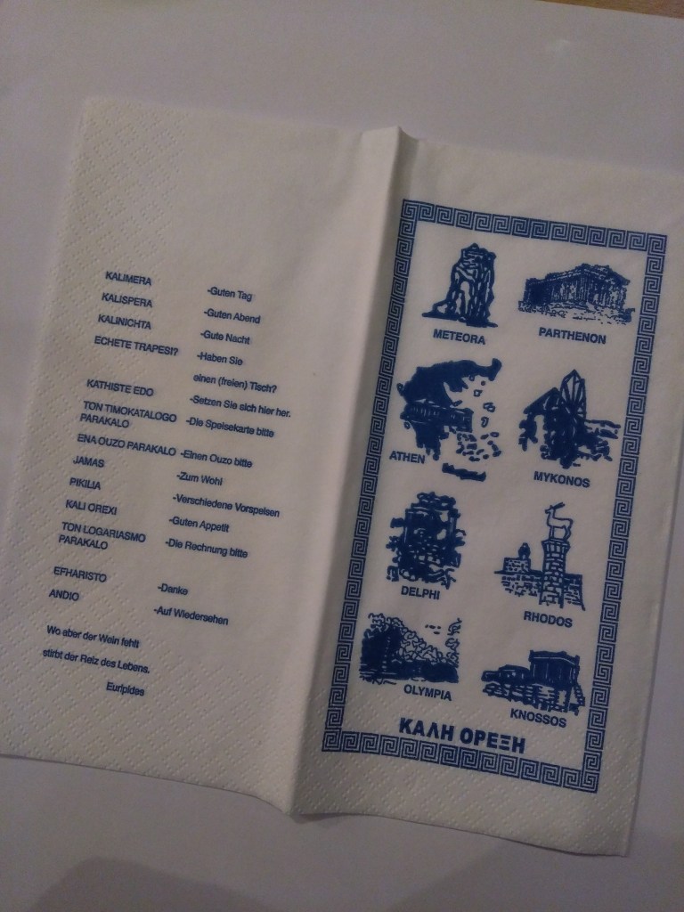 When my birthday rolled around, theatres were still closed so my wish to see a show was not a possibility. The lovely Husband booked a socially-distanced table at a local Greek restaurant (just weeks before Switzerland went into another semi-lockdown) and we all went for a nice meal with an opportunity to learn a few Greek words off the napkins.