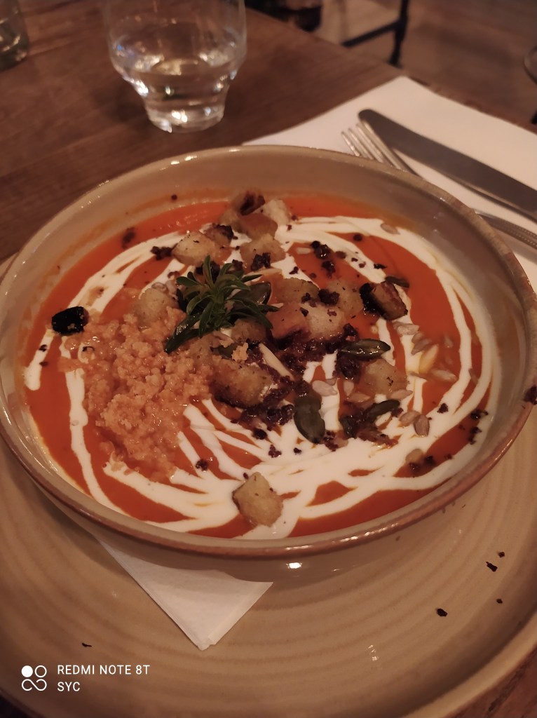 Stained Glass in the churchPumpkin SoupGoat’s Cheese Main CourseSchnitzelSteak with an interesting knifeApple dessertMorning ViewView of World Cup Ski RunRight Click, Open in new tab to see panoramaLunchtime viewEvening ViewLiked this piece of art in the hotel lobby