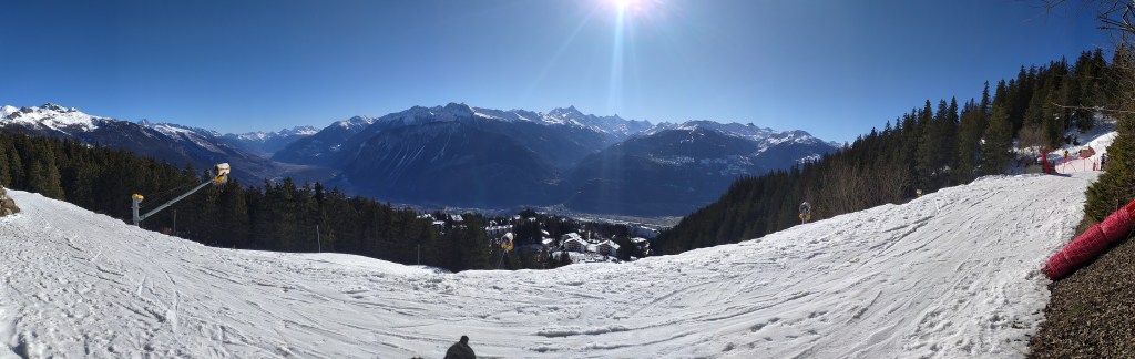 So we went up to a mountain we had never been to before, having heard that they might have more snow than others – we went to Crans Montana. Not somewhere we would usually go because it’s a bit further away and has been known to be expensive.